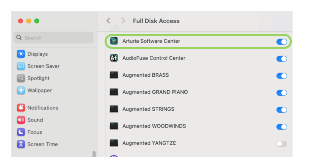 解決方法はズバリ、ASC(Arturia Software Center)にフルディスクアクセスを付けてあげる。