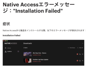音源・プラグイン2025年10月11日【解決】Native Accessのエラーメッセージ:”Installation Failed”が出てインストールできないアプリがあって困ったよ。