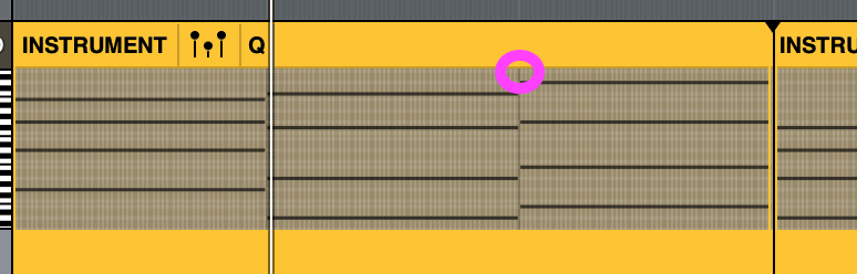 - 操作のコツ: MIDIクリップの上下中央より、少し上のあたりにマウスを合わせます。