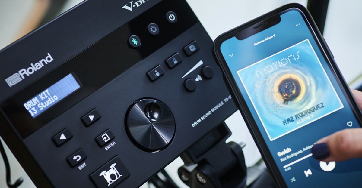 スマートフォンとTD-07をワイヤレスで接続すれば、スマホで再生しているYouTubeやSpotifyなどの音楽を、ドラムのヘッドホンから一緒に流すことができます。好きなアーティストの曲に合わせてセッションしたり、レッスン動画の音声を聴きながら練習したりと、楽しみ方が大きく広がります。